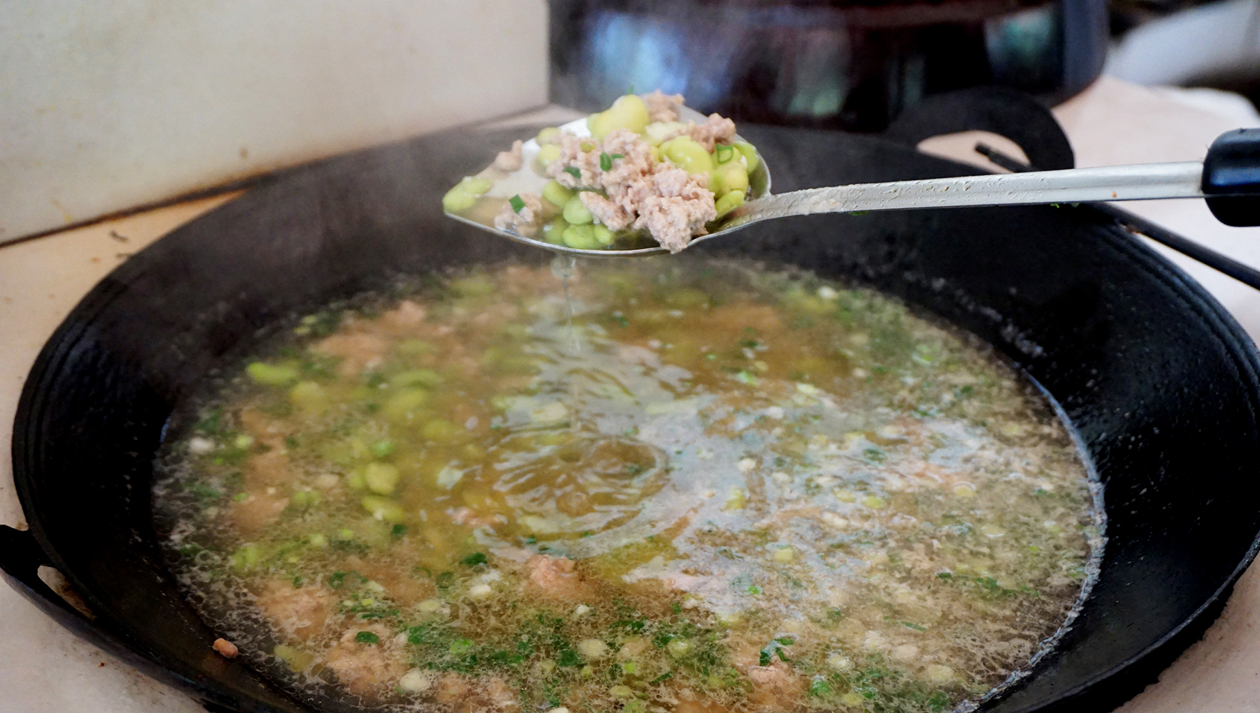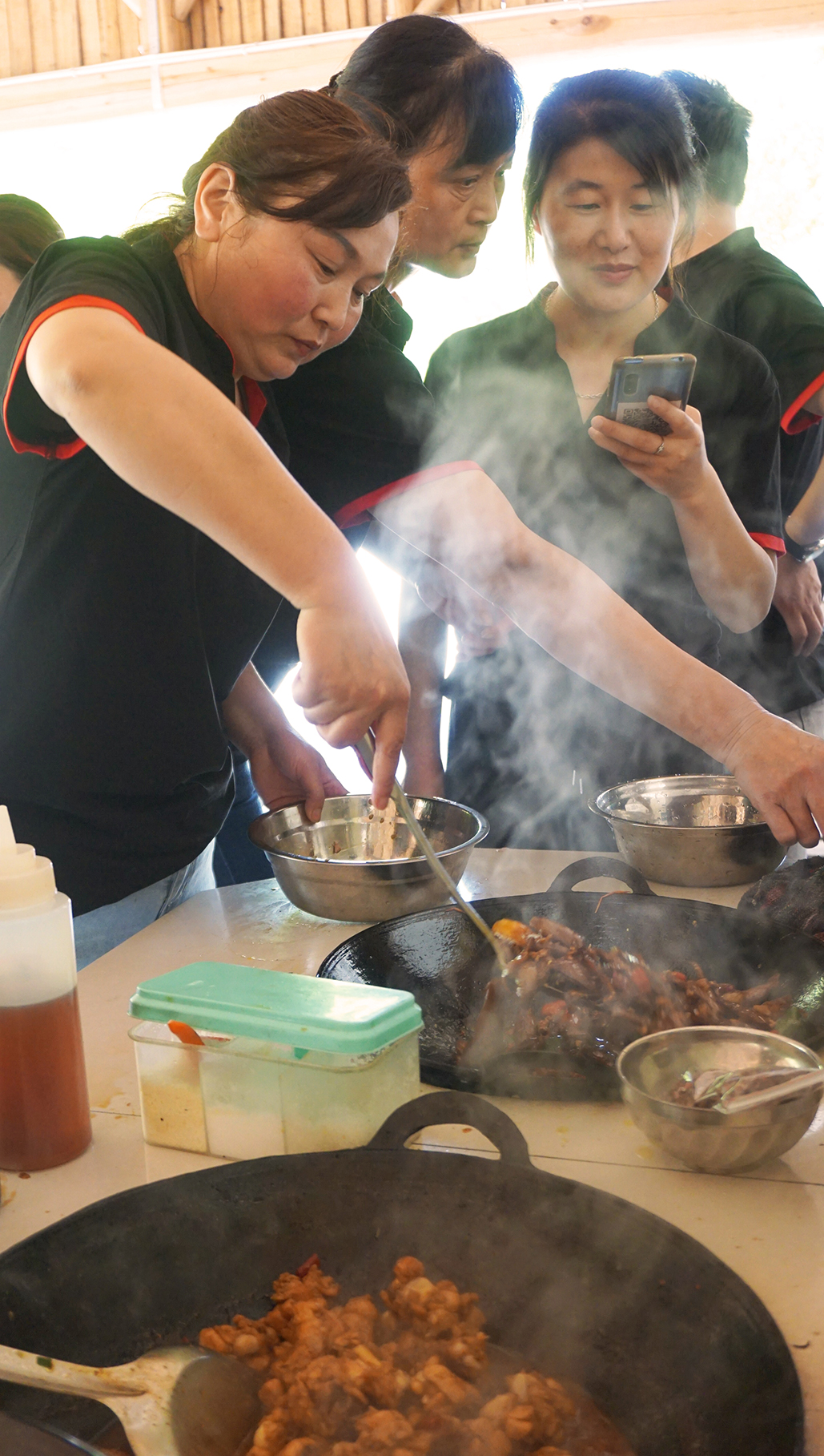 歡聲笑語(yǔ)隨著陣陣炊煙,我們其樂(lè)融融。不一會(huì)兒,空氣中開(kāi)始彌漫各色菜品的香味,惹人食欲。