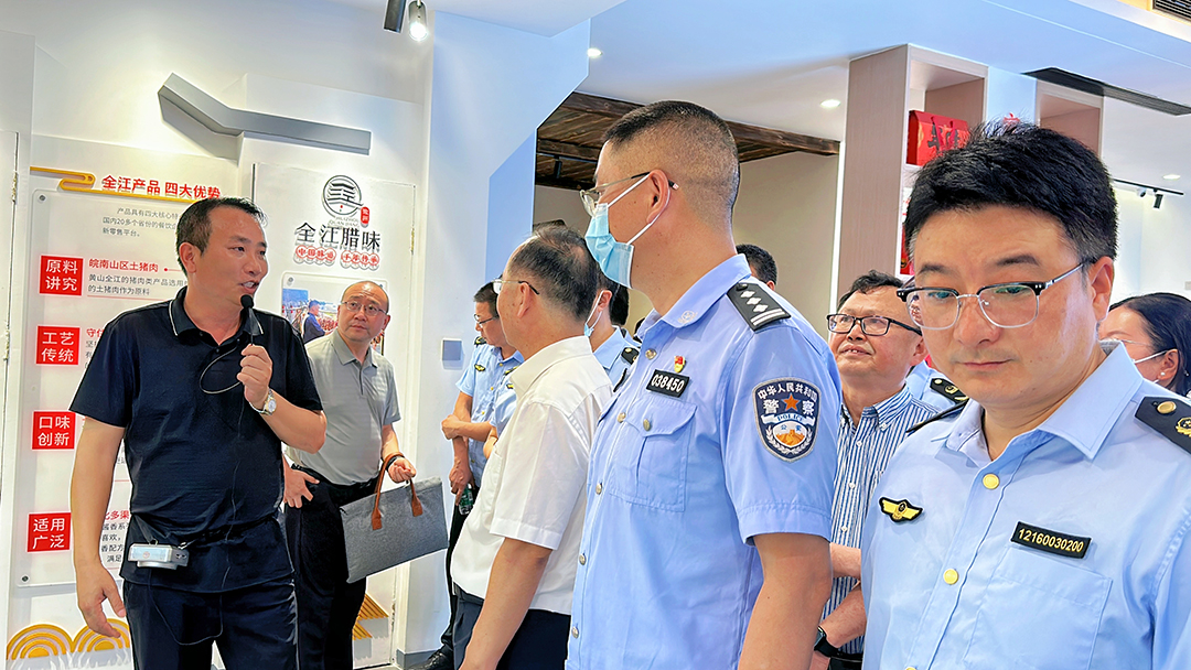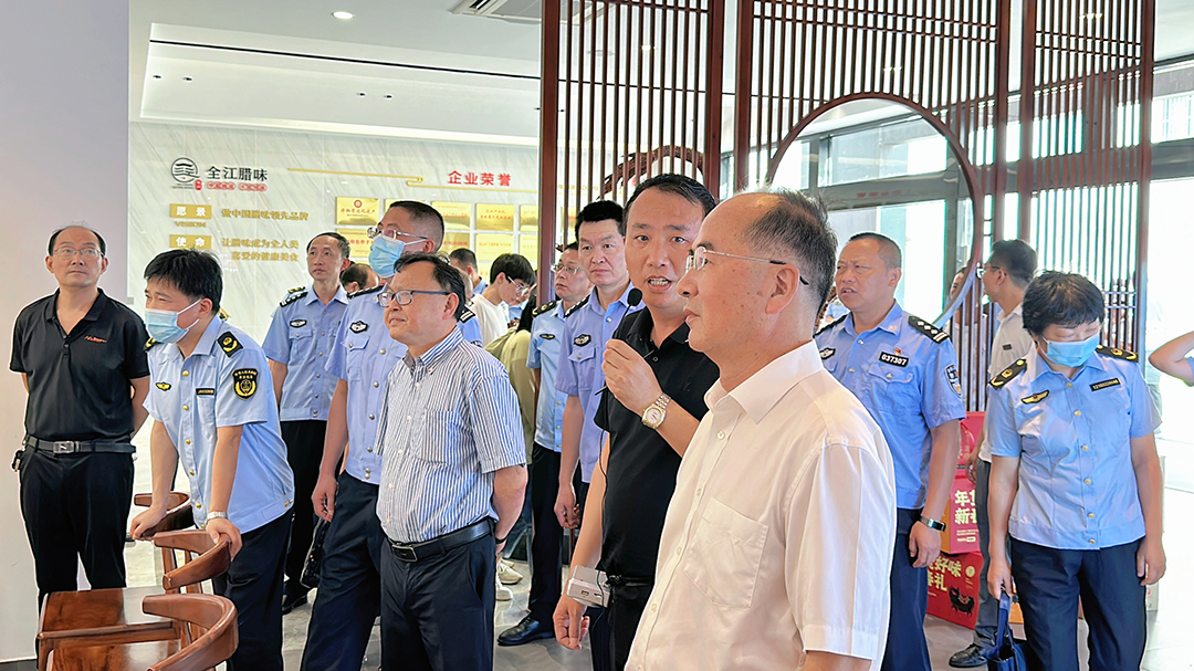 7月9日上午,黃山市黃山區(qū)食品安全委員會辦公室、黃山市公安局黃山分局、黃山市黃山區(qū)農(nóng)業(yè)農(nóng)村水利局、市場監(jiān)督管理局領(lǐng)導(dǎo)一行蒞臨我司進行檢查指導(dǎo)工作,全江臘味總經(jīng)理胡國峰、品管部經(jīng)理包琦棟及相關(guān)負(fù)責(zé)人陪同。
