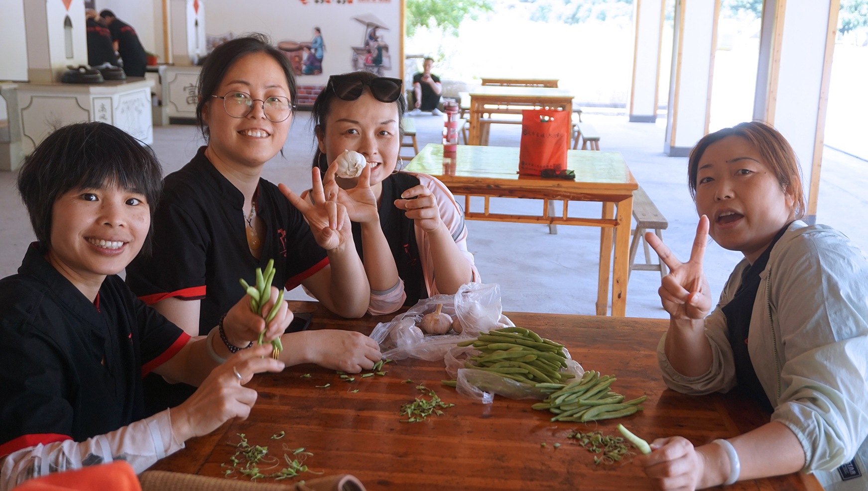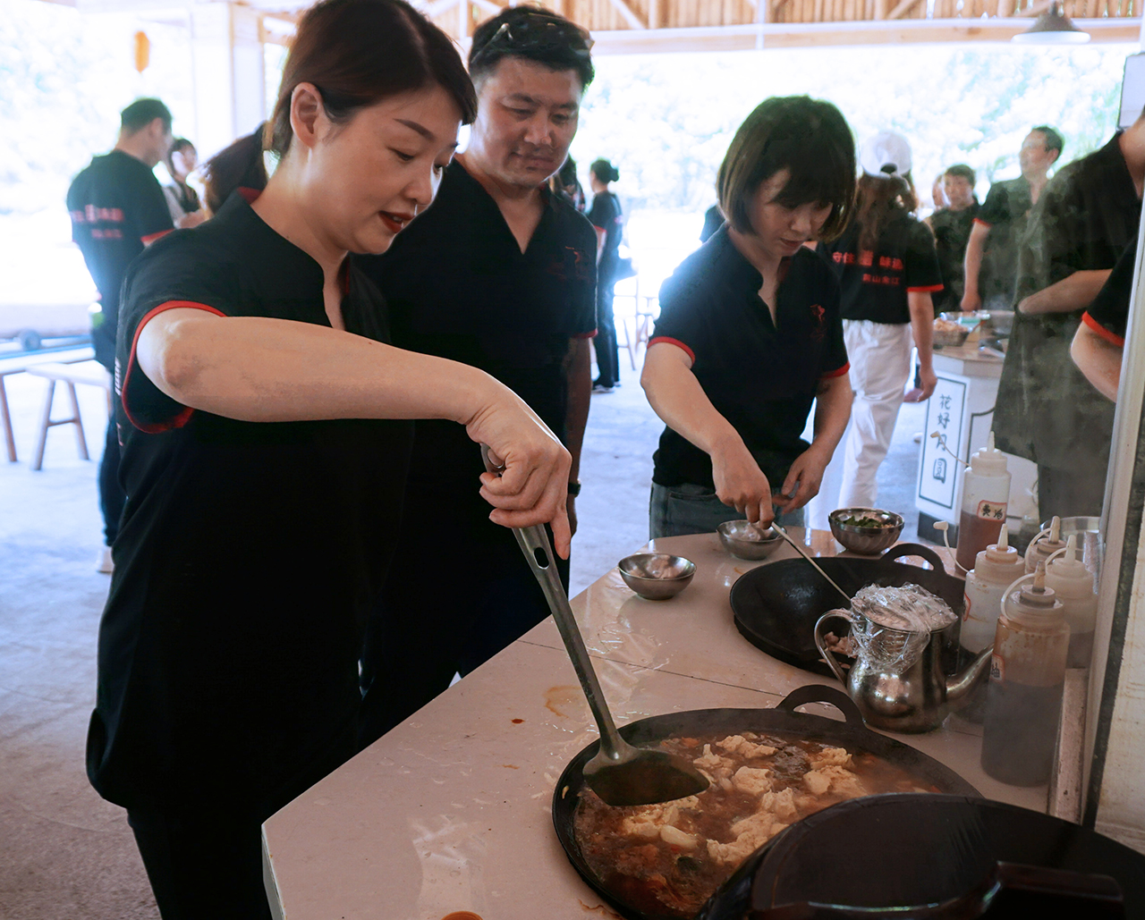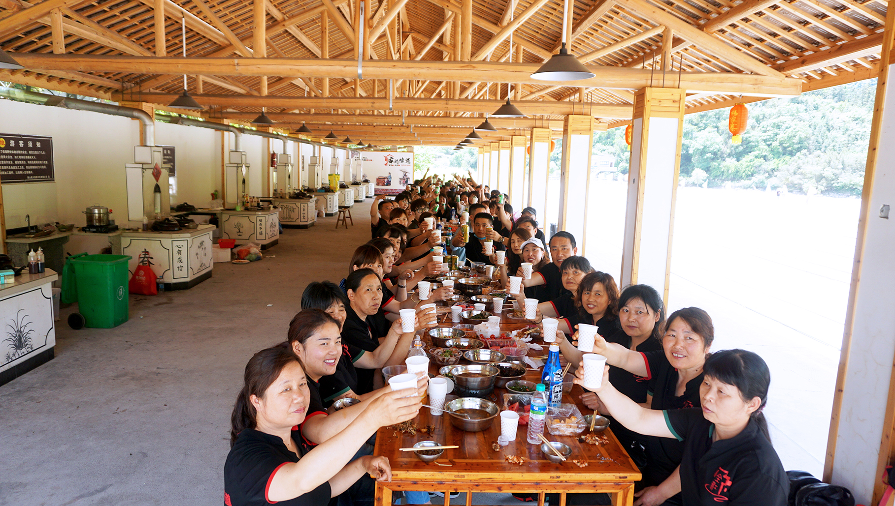 一個(gè)多小時(shí)的忙活,各小組菜終于上齊啦!大功告成,全江的家人們圍在一起,共同干杯,一起享受這頓豐盛的午餐!