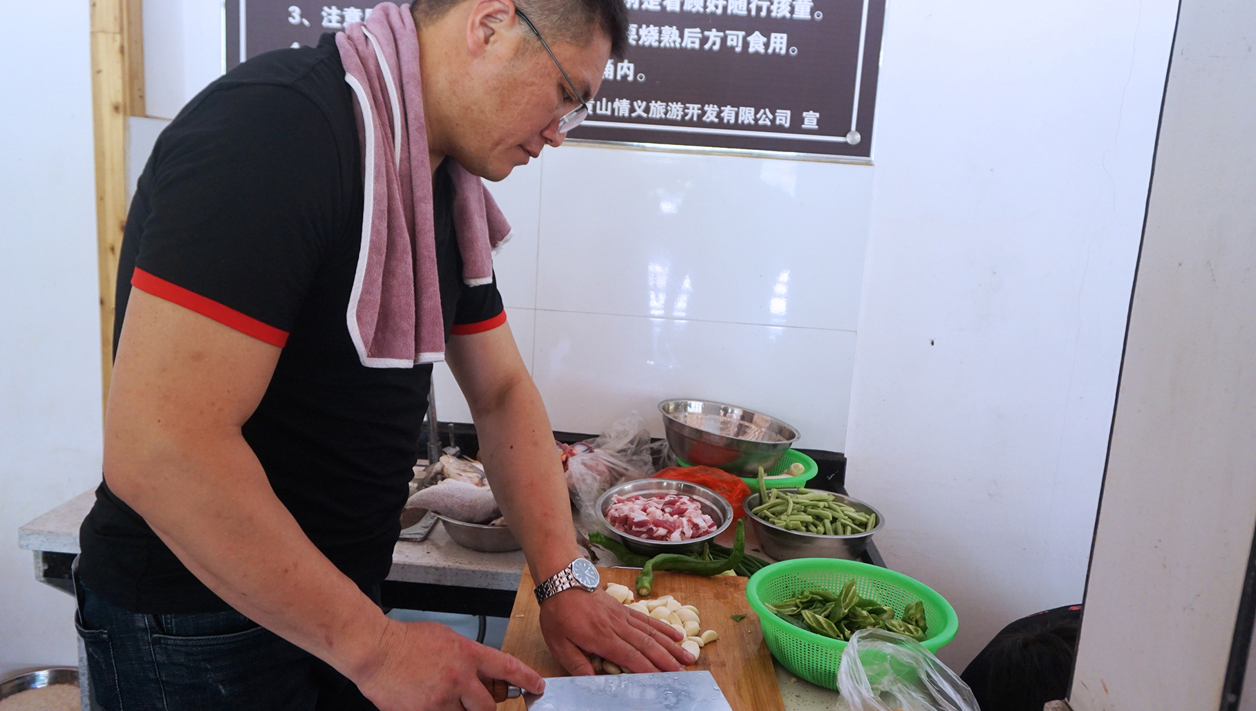 每個(gè)小組分工明確:洗菜、切菜、生火、燒菜……每一項(xiàng)都進(jìn)行的井井有條,用最樸素的方式——燒柴煮土灶準(zhǔn)備大鍋飯!