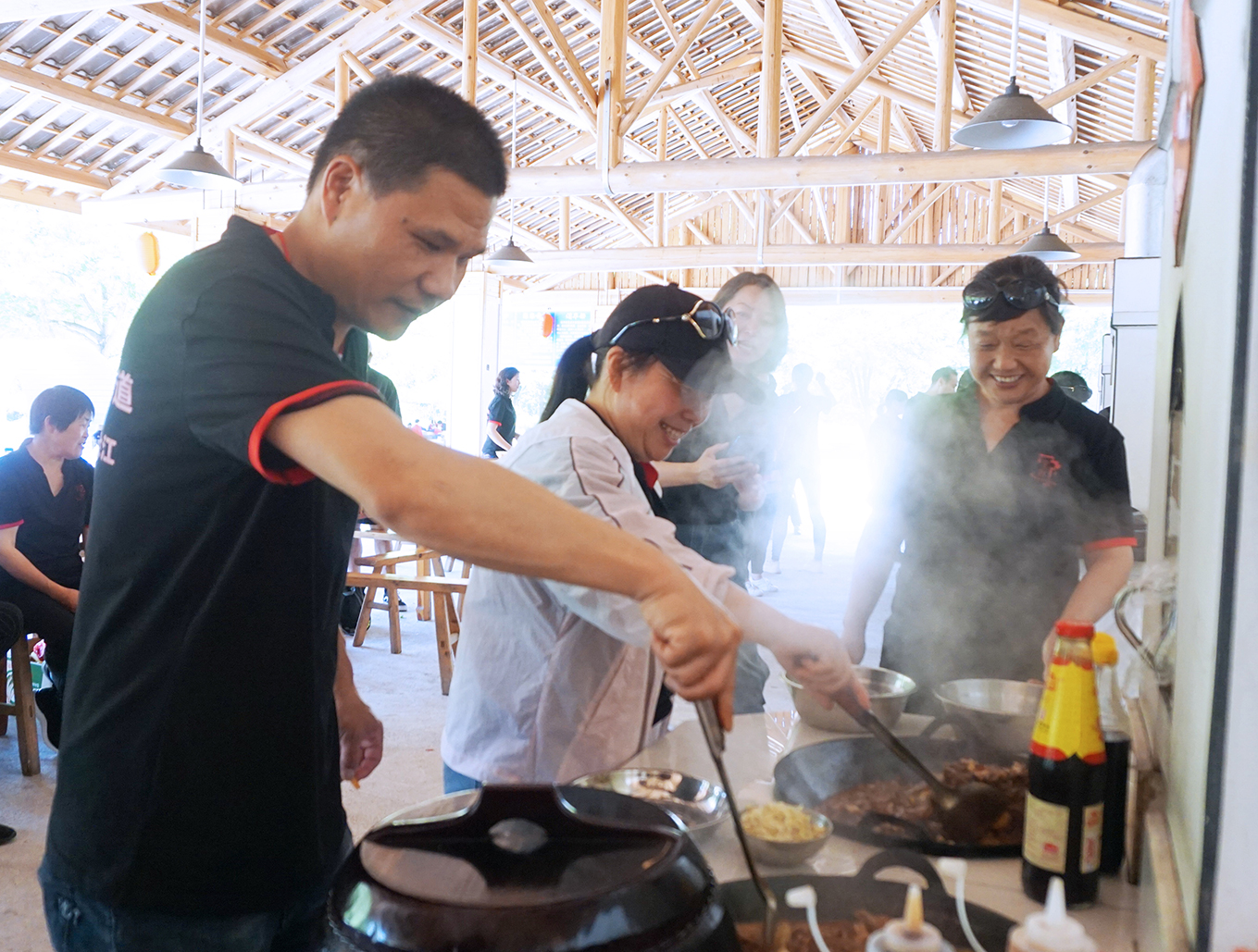 歡聲笑語(yǔ)隨著陣陣炊煙,我們其樂(lè)融融。不一會(huì)兒,空氣中開(kāi)始彌漫各色菜品的香味,惹人食欲。