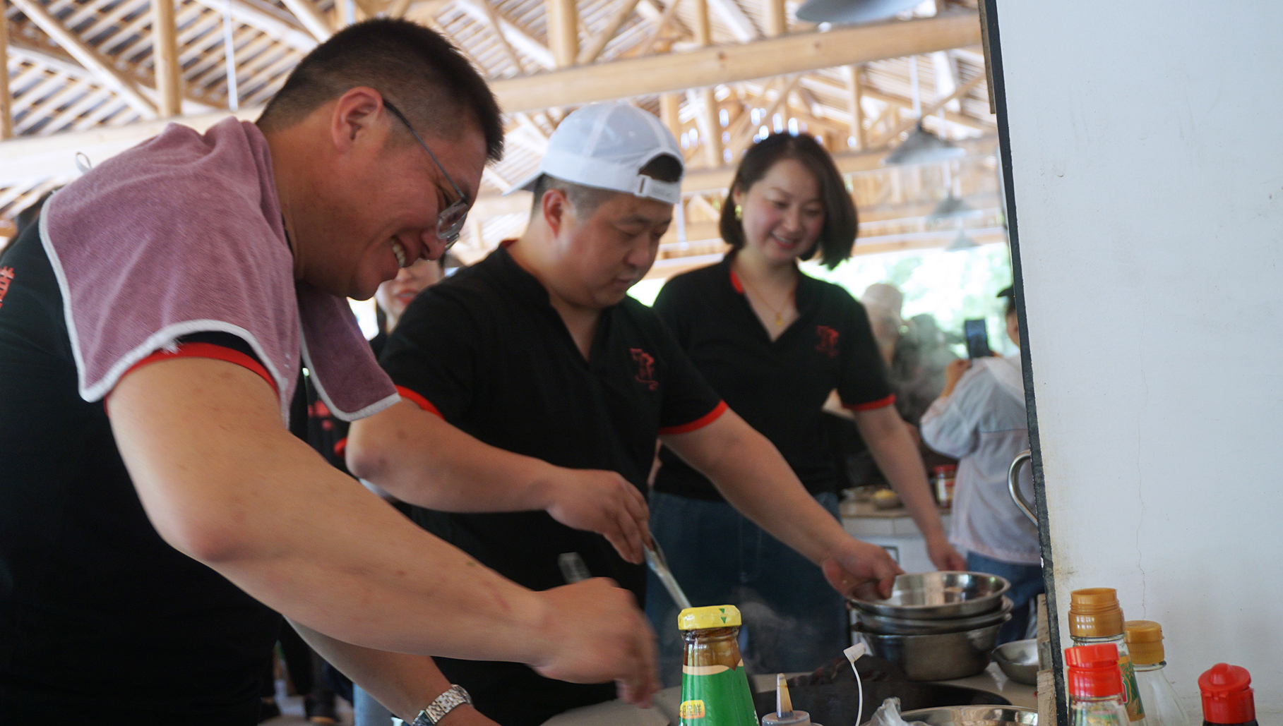 大鍋飯的煙火氣依舊掩蓋不了大家嘗試各種項(xiàng)目的熱情,一頓干飯結(jié)束,開(kāi)始游戲比賽啦!