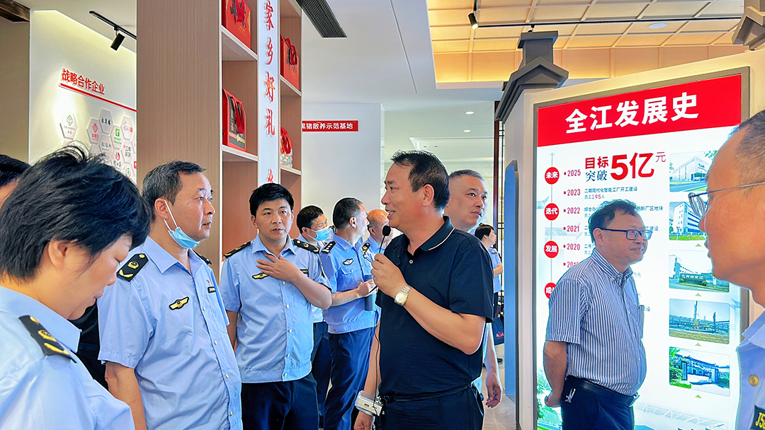 7月9日上午,黃山市黃山區(qū)食品安全委員會辦公室、黃山市公安局黃山分局、黃山市黃山區(qū)農(nóng)業(yè)農(nóng)村水利局、市場監(jiān)督管理局領(lǐng)導(dǎo)一行蒞臨我司進行檢查指導(dǎo)工作,全江臘味總經(jīng)理胡國峰、品管部經(jīng)理包琦棟及相關(guān)負(fù)責(zé)人陪同。