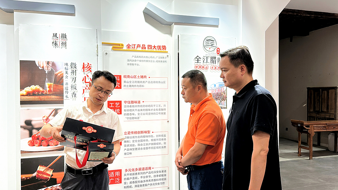 7月12日,全江臘味迎來(lái)了江蘇溧陽(yáng)姜下村委呂崗華書記一行的到訪。市場(chǎng)部經(jīng)理羅輝攜同相關(guān)人員全程接待。