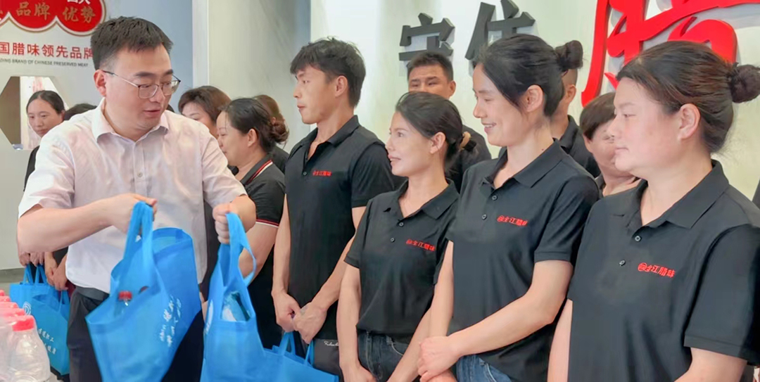 7月24日,星期三,驕陽(yáng)似火,熱浪滾滾。在這熾熱的季節(jié)里,黃山區(qū)區(qū)委及總工會(huì)如同一股清涼的溪流,為全江臘味的員工們帶來(lái)貼心的關(guān)懷與清涼。