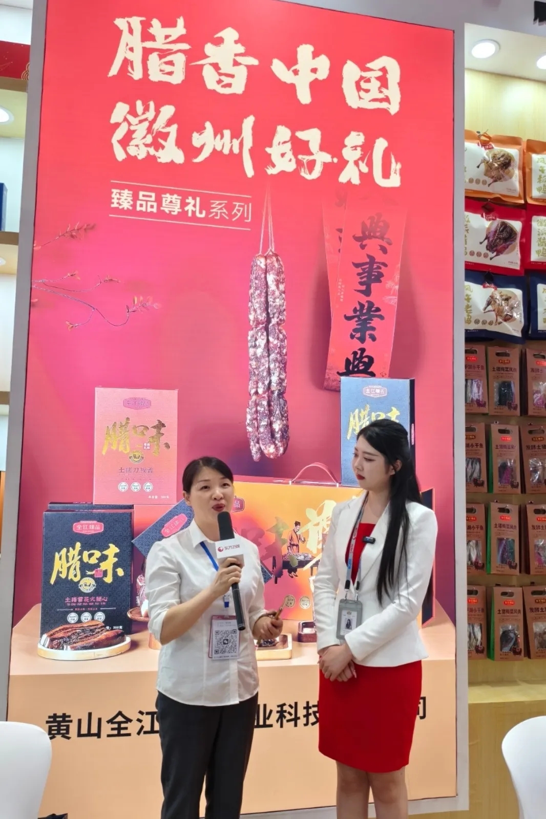 展位前人頭攢動,參觀者們紛紛駐足品嘗,對全江臘味的特有風(fēng)味和精湛工藝贊不絕口。東方衛(wèi)視記者也被我們的臘味魅力所吸引,特意前來采訪。